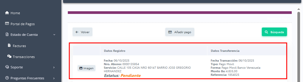 Ahora nuestro pago o abono quedará en estatus de pendiente hasta que sea aprobado por un operador.