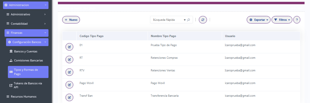 Luego de completar los campos presionamos el botón de agregar banco y automáticamente se nos listará en las opciones, recalcando que en esta sección puedes agregar los métodos de pagos de tu preferencia.