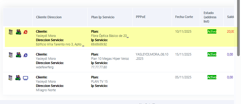 De momento seria TODA la información con respecto a la opción Servicio Internet, dentro del módulo Listado de cliente, Servicios.