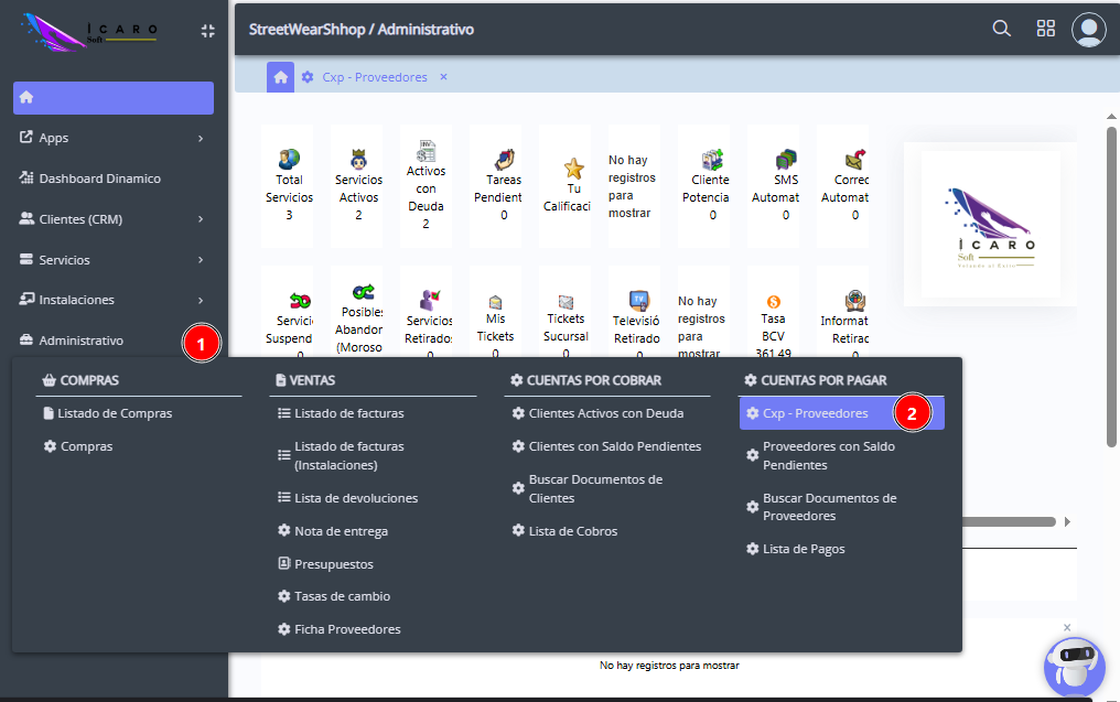 Al ingresar a la aplicación ubicamos la barra del menú al lado izquierdo de nuestra pantalla, hacemos clic en el apartado de Administrativo, Cuentas por pagar, CXP Proveedores.
