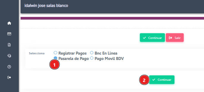 Seleccionamos Botón de Pago BDV y Continuar.