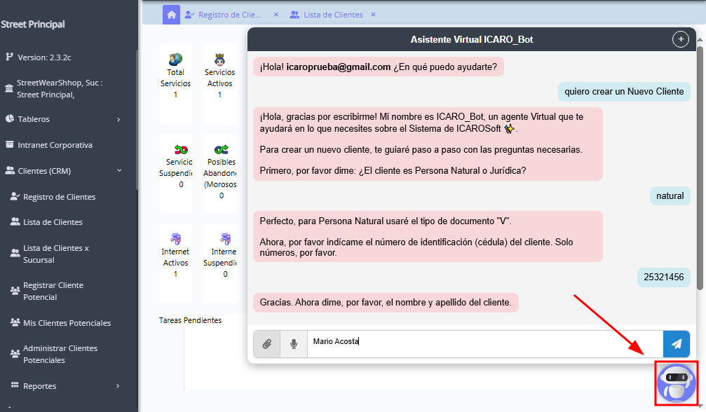 Listo, hemos finalizado el registro de cliente en ICAROSoft.
